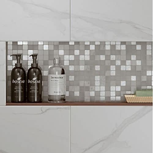 Each mosaic in this collection is a masterpiece in its own right, meticulously composed to create a harmonious interplay of textures, colours and materials. The marriage of glass, stone and metal not only adds depth and dimension to your walls but also infuses a touch of sophistication and luxury into your interiors. Whether you're seeking a mosaic that captures the serene beauty of nature with earthy tones and stone accents or one that radiates contemporary elegance with sleek glass and metallic hues, the Glass & Mixed V Collection has a design to match your vision. These tiles are the perfect canvas for expressing your unique style, allowing you to curate a space that is both visually captivating and deeply personal. Discover the transformative power of mosaic artistry with the Glass & Mixed V Collection and turn your space into a masterpiece!