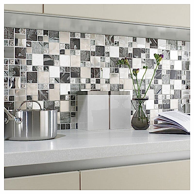 Each mosaic in this collection is a masterpiece in its own right, meticulously composed to create a harmonious interplay of textures, colours and materials. The marriage of glass, stone and metal not only adds depth and dimension to your walls but also infuses a touch of sophistication and luxury into your interiors. Whether you're seeking a mosaic that captures the serene beauty of nature with earthy tones and stone accents or one that radiates contemporary elegance with sleek glass and metallic hues, the Glass & Mixed V Collection has a design to match your vision. These tiles are the perfect canvas for expressing your unique style, allowing you to curate a space that is both visually captivating and deeply personal. Discover the transformative power of mosaic artistry with the Glass & Mixed V Collection and turn your space into a masterpiece!