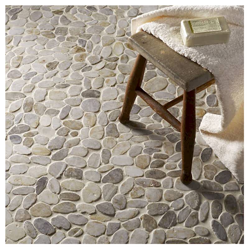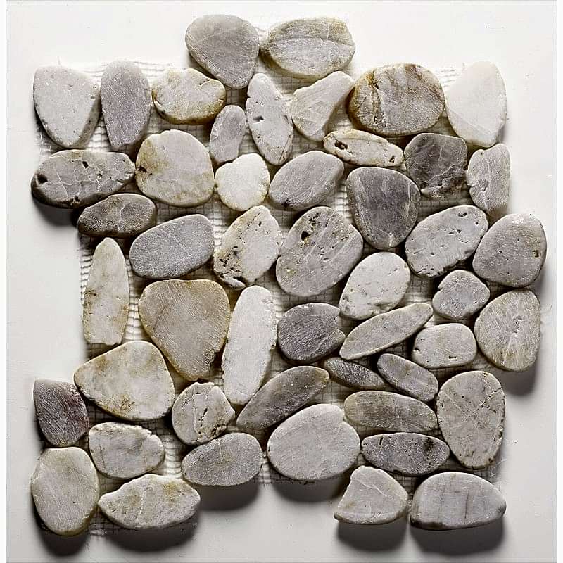 Natural stone flat cut pebble mosaic Two colour options Matt finish Suitable for wall and floor applications Durable construction Streamstone's unique mosaic arrangement evokes the essence of a tranquil pebble-strewn beach underfoot, blending seamlessly with both contemporary and traditional decors. Each tile is designed to interlock with precision, ensuring a seamless installation process and a flawless finish. Whether gracing your bathroom floor, kitchen backsplash or as a statement piece in your living area, Streamstone tiles promise durability and timelessness. Their natural stone composition ensures that each tile is unique, with slight variations in pattern and colour that add character and depth to your spaces. Streamstone's commitment to quality and beauty makes it the ideal choice for those seeking to infuse their homes with the elegance of natural stone in a distinctive and practical format.